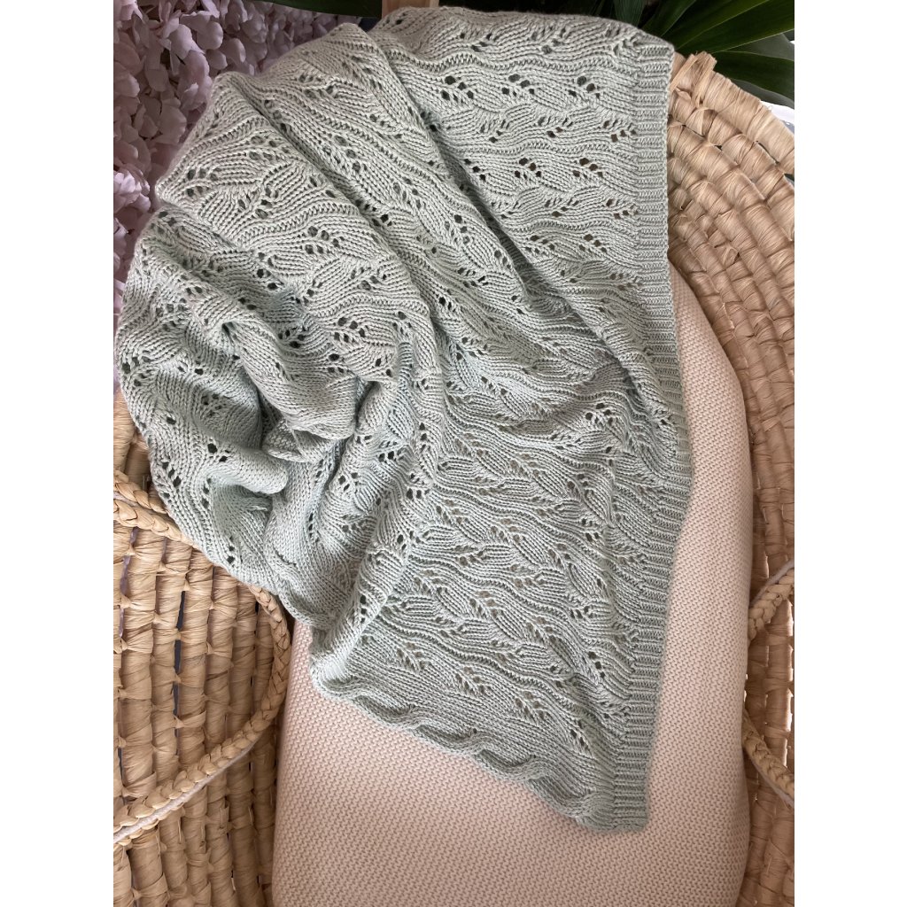 Piękny kocyk w cudownym ażurkowym splocie, rozmiar 80x100 cm, wykonany z 50% bawełny i 50% przędzy bambusowej.