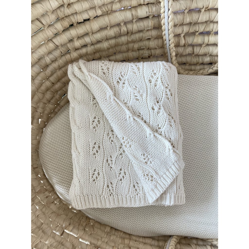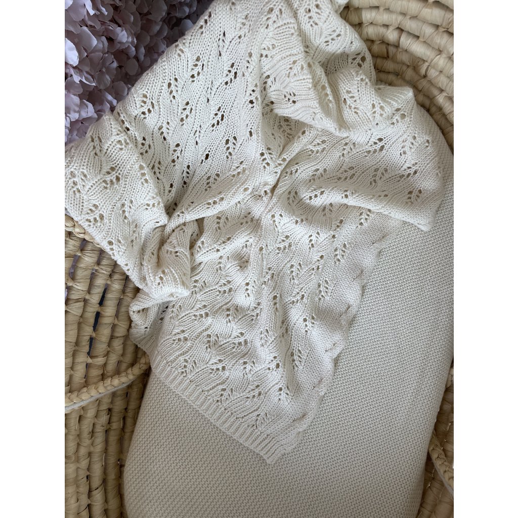 ### Piękny kocyk w cudownym ażurkowym splocie, rozmiar 80x100 cm, wykonany z 50% bawełny i 50% przędzy bambusowej.