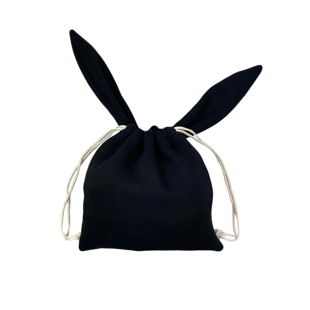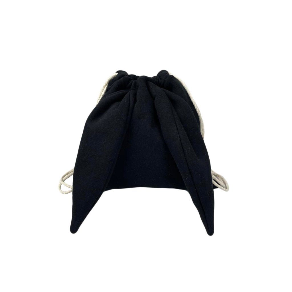 Bavlněný batůžek vyrobený z hrubšího bavlněného materiálu zdobený králičími oušky.