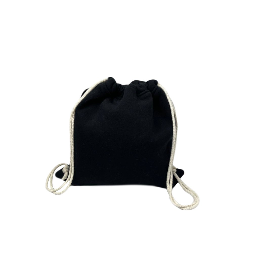 Batůžek je jednoduchého střihu a vázaní je šňůrkami,