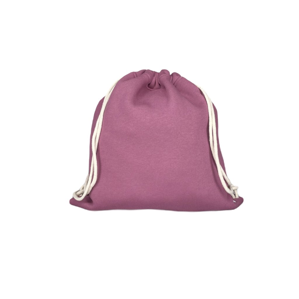 Batůžek je jednoduchého střihu a vázaní je šňůrkami,