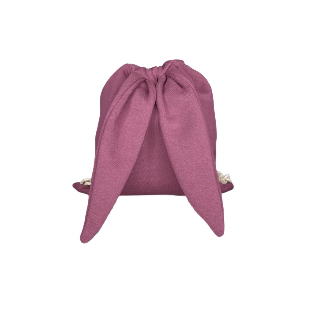 Bavlněný batůžek vyrobený z hrubšího bavlněného materiálu zdobený králičími oušky.