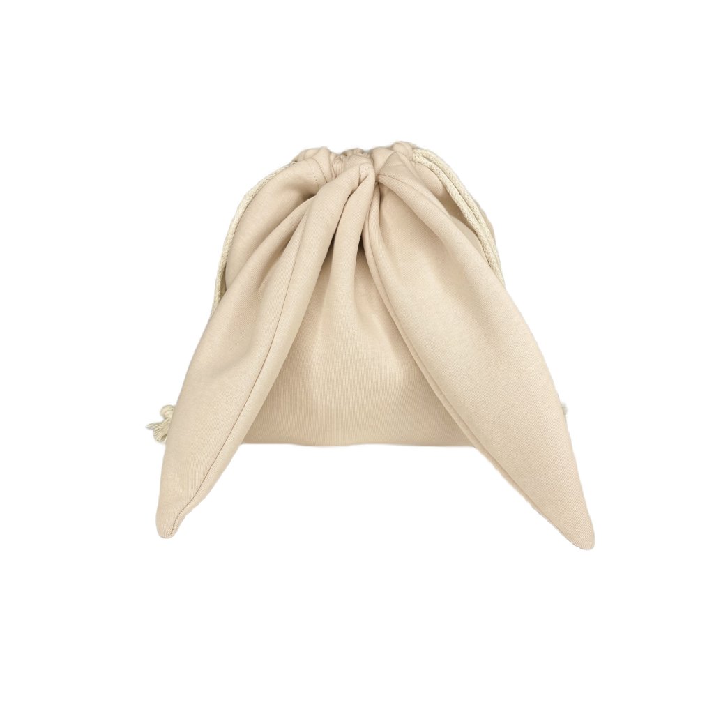 Bavlněný batůžek vyrobený z hrubšího bavlněného materiálu zdobený králičími oušky.