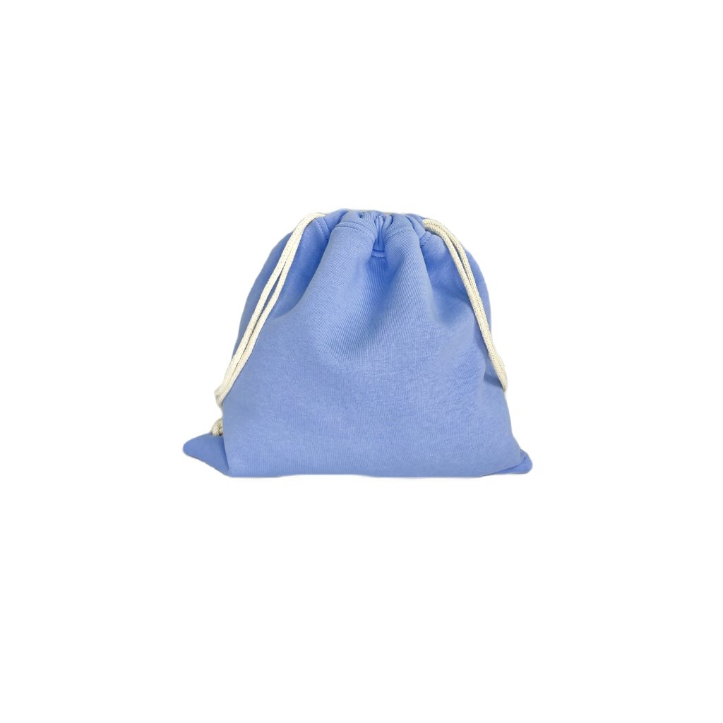 Batůžek je jednoduchého střihu a vázaní je šňůrkami,