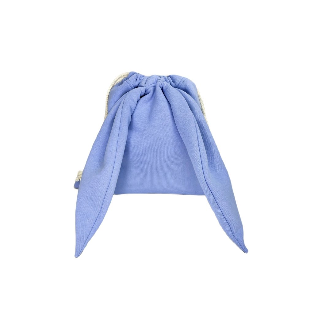 Bavlněný batůžek vyrobený z hrubšího bavlněného materiálu zdobený králičími oušky.