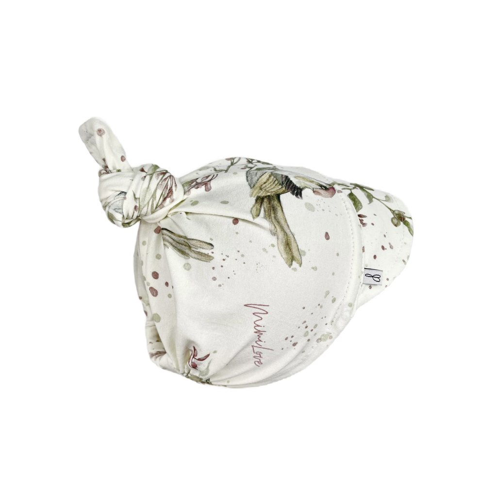 Bavlněný dětský šátek s kšiltem 6-18m. Golden Birds Rose White
