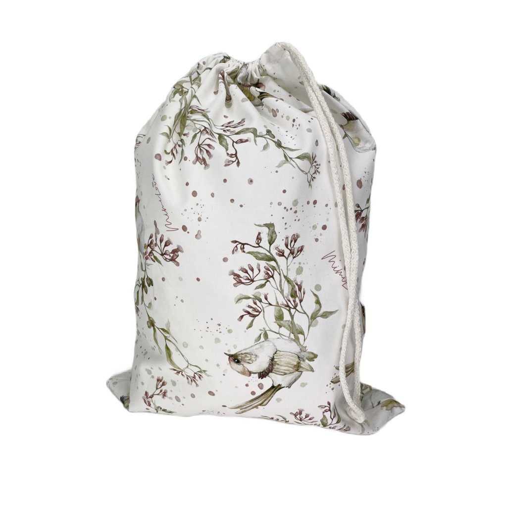 Pytlík je dostatečně velký na uchování textilu, hraček, nebo je vhodný jako dárkový pytlík.