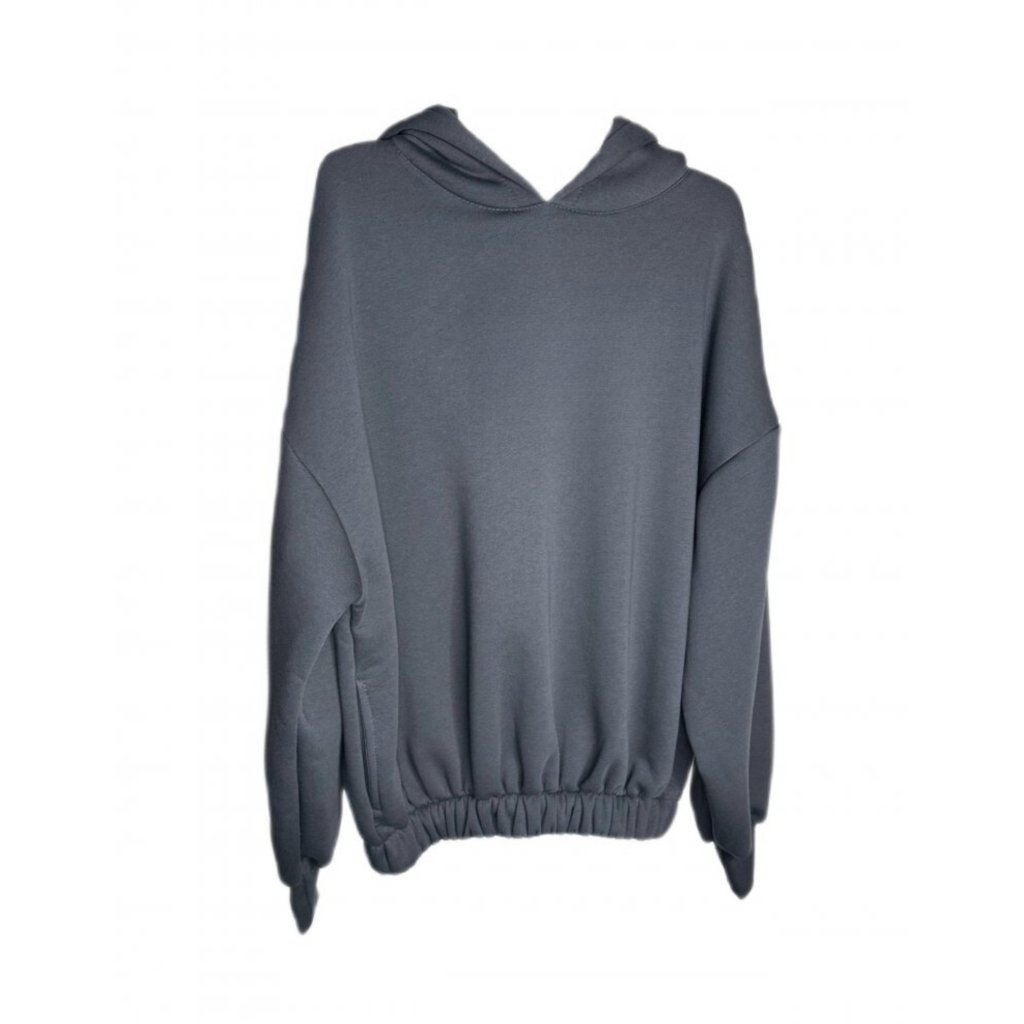 Dámská velice módní mikina do pasu s širokými rukávy, ukončené na manžetu. Mikina má pohodlnou kapuci, dvě postranní kapsy a široký střih, který je ukončen dole pohodlnou širokou gumičkou.