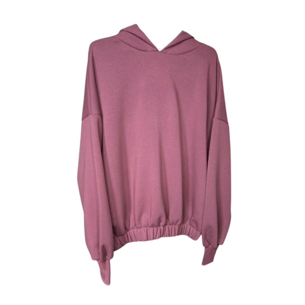 Dámská velice módní mikina do pasu s širokými rukávy, ukončené na manžetu. Mikina má pohodlnou kapuci, dvě postranní kapsy a široký střih, který je ukončen dole pohodlnou širokou gumičkou.