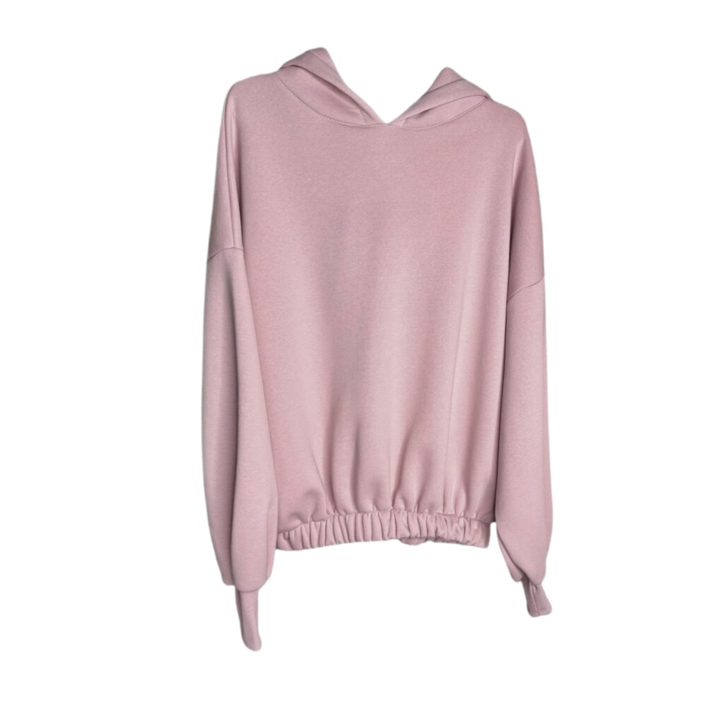 Dámská velice módní mikina do pasu s širokými rukávy, ukončené na manžetu. Mikina má pohodlnou kapuci, dvě postranní kapsy a široký střih, který je ukončen dole pohodlnou širokou gumičkou.