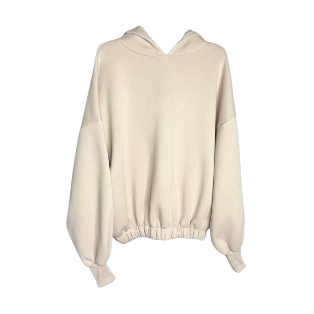 Dámská velice módní mikina do pasu s širokými rukávy, ukončené na manžetu. Mikina má pohodlnou kapuci, dvě postranní kapsy a široký střih, který je ukončen dole pohodlnou širokou gumičkou.