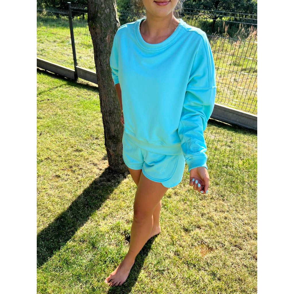 Souprava obsahuje mikinu a kraťasy. Tyto kousky lze kombinovat s kterýmkoliv kousek oblečení! Vše je vyrobeno z velmi příjemného materiálu. Souprava je v módních pastelových barvách! Mikina má na konci rukávu vyšito logo naší značky, vypadá to velice luxusně a kraťasy na jedné nohavici vyšitou znak loga.