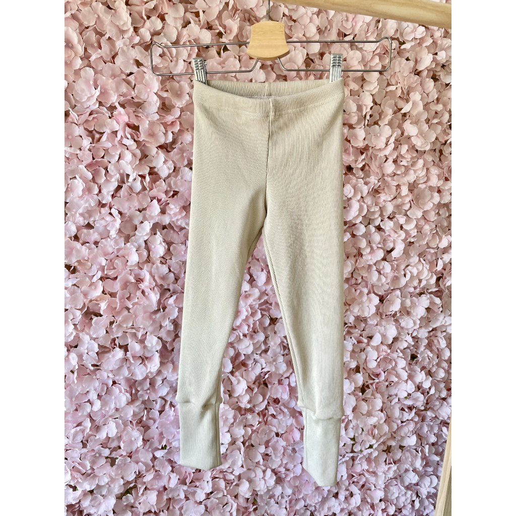 Dětské legíny s manžetkou vyrobené z žebrovaného bavlněného materiálu.