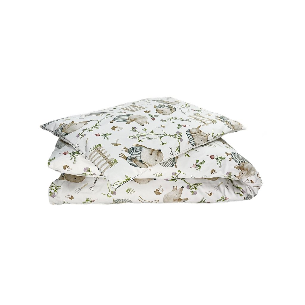 Balení obsahuje 1 x povlak na přikrývku 100x135 cm a 1 x povlak na polštář 40x60 cm a bavlněný pytlík ve stejném vzoru, ve kterém je povlečení zabaleno.