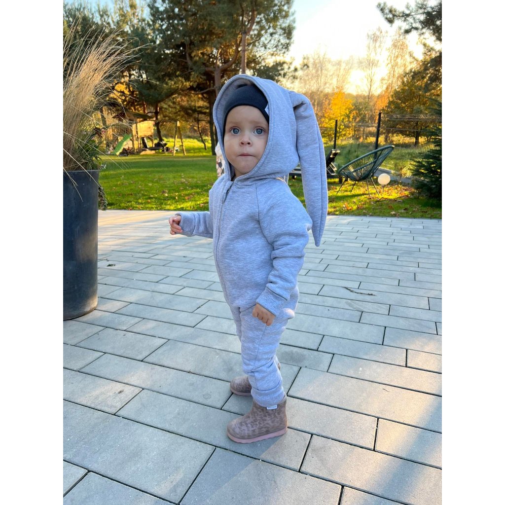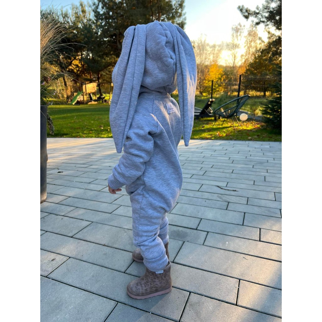 Velice praktický overal s kapucí a roztomilými oušky králíčka, vyrobeno z velmi příjemného a teplého bavlněného materiálu. Dítě se v něm cítí příjemně.