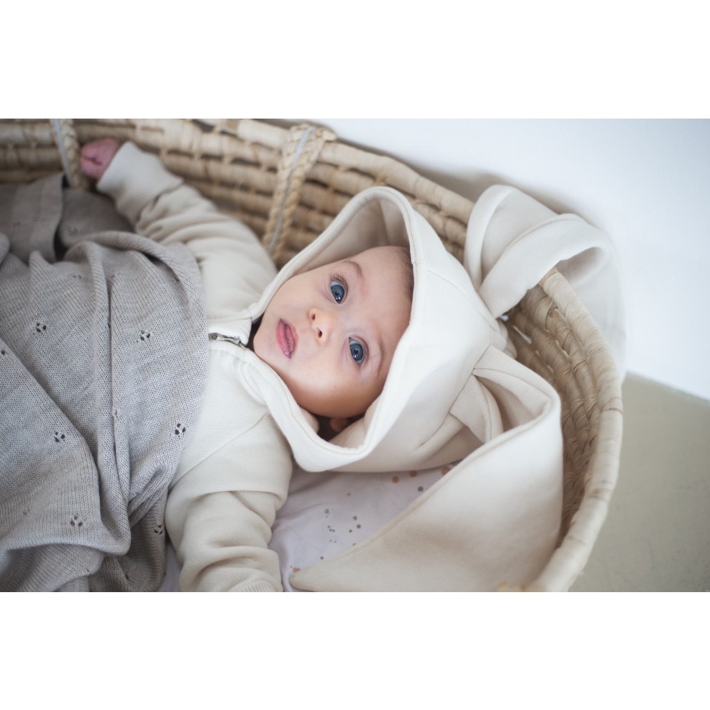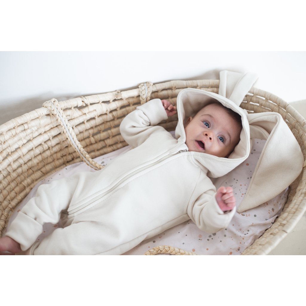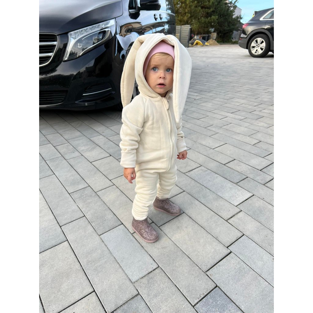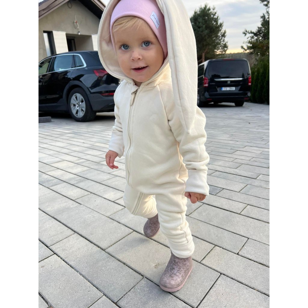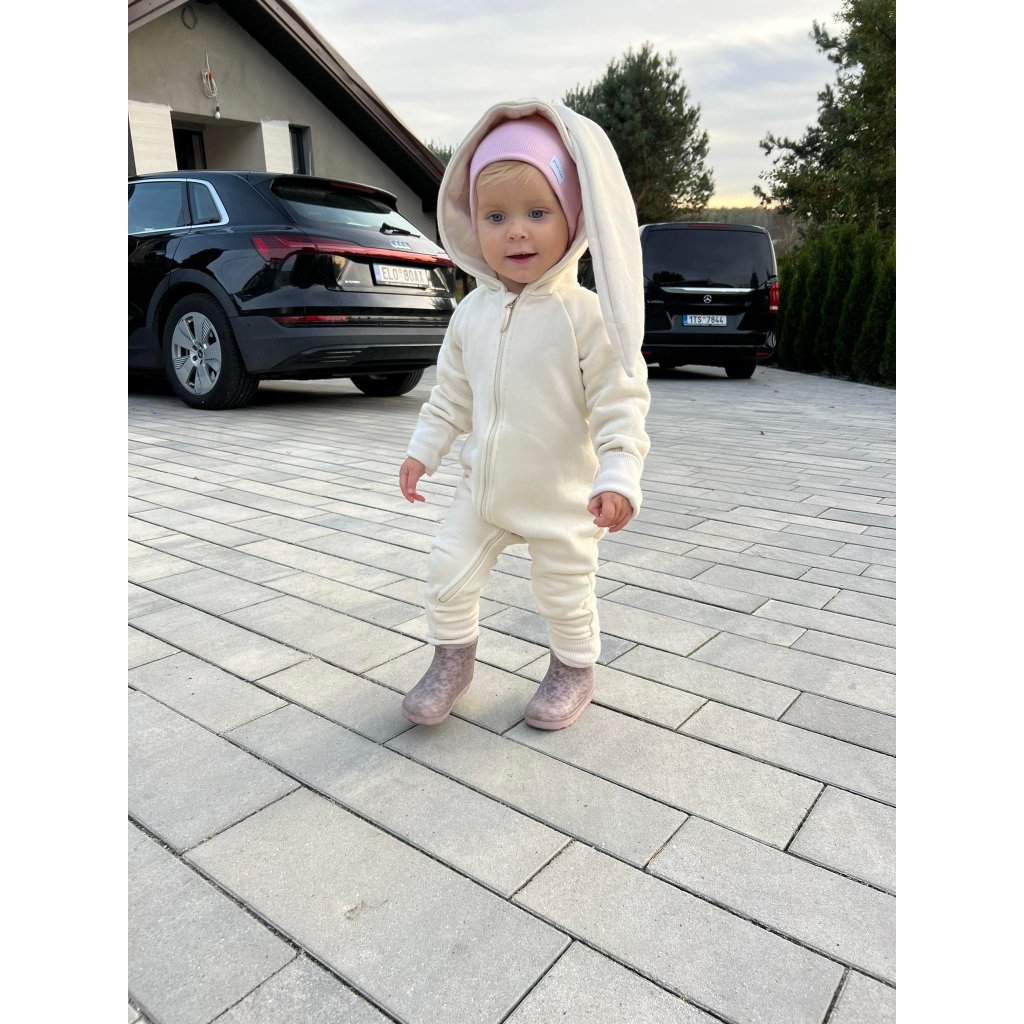 Velice praktický overal s kapucí a roztomilými oušky králíčka, vyrobeno z velmi příjemného a teplého bavlněného materiálu. Dítě se v něm cítí příjemně.