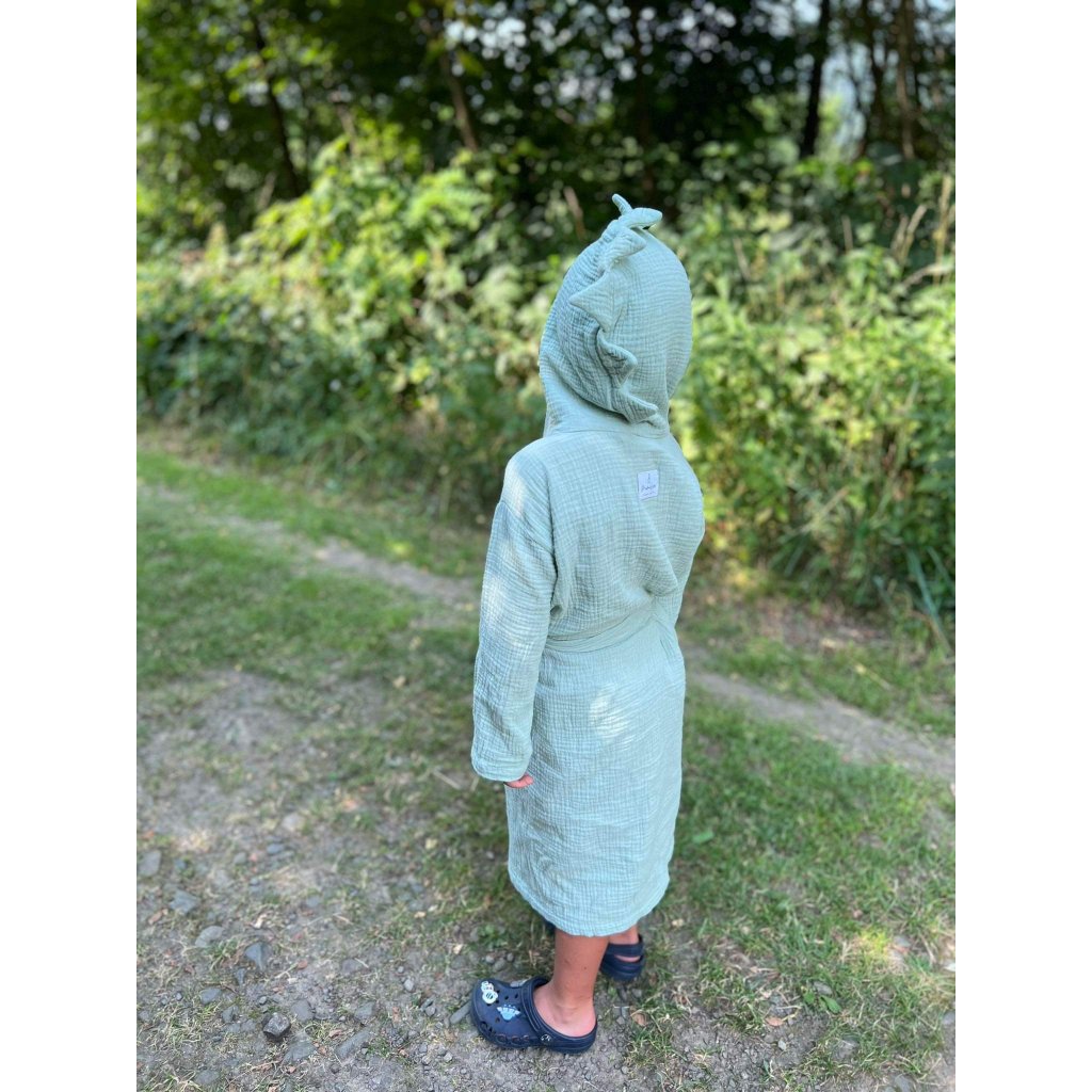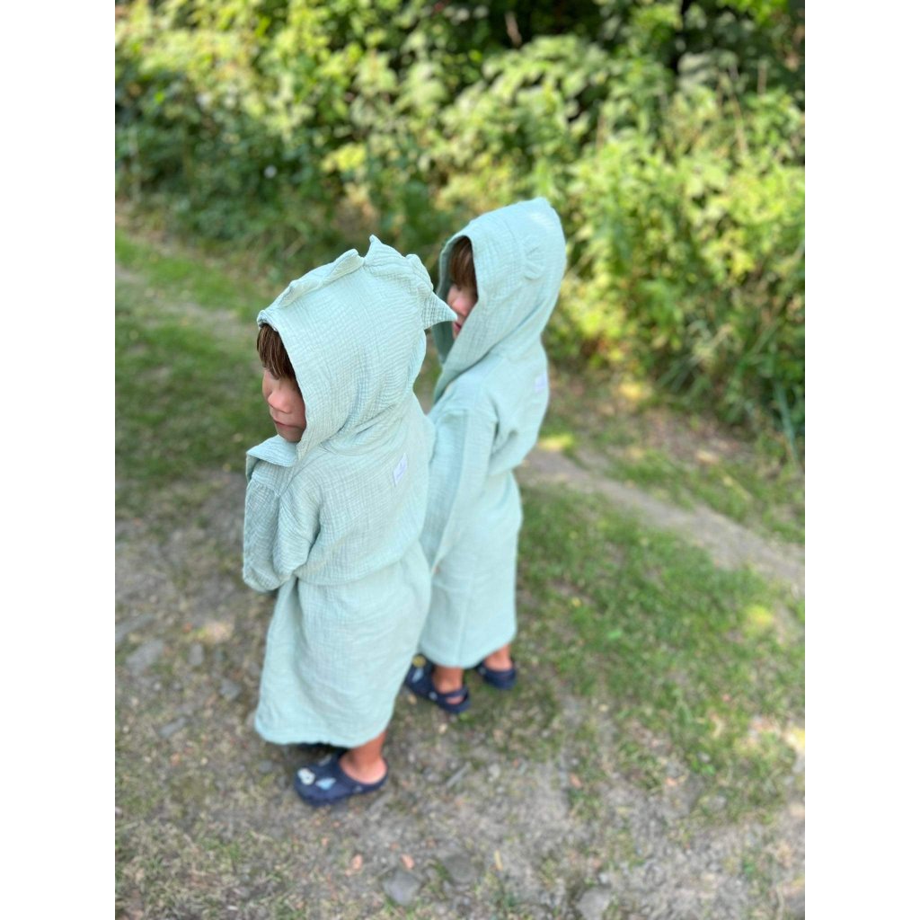 Tento dětský župánek s kapucí je vyrobený z velmi příjemného bavlněného mušelínu. Vaše děti budou mít pocit sucha a tepla i po osušení po koupání. Bude skvělým doplňkem pro každodenní rituály po koupání a pro relaxaci doma. Vaše děti se budou cítit pohodlně a stylově s roztomilými doplňky na kapuci.