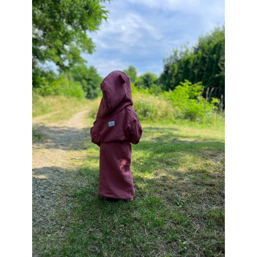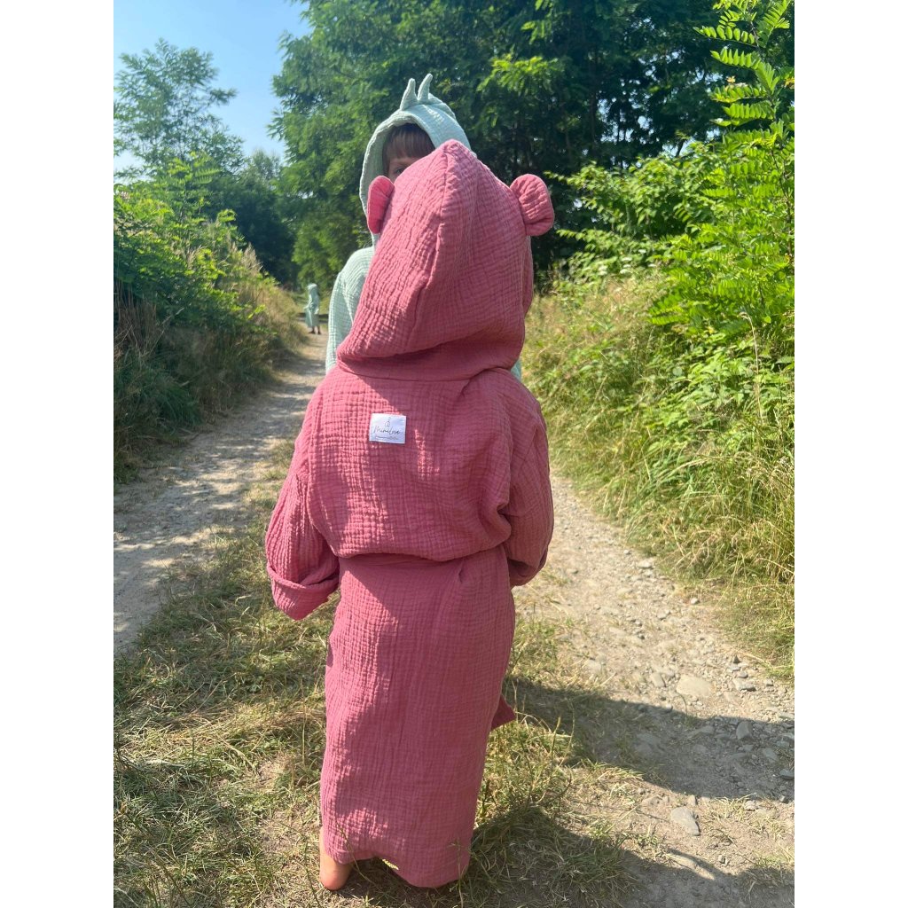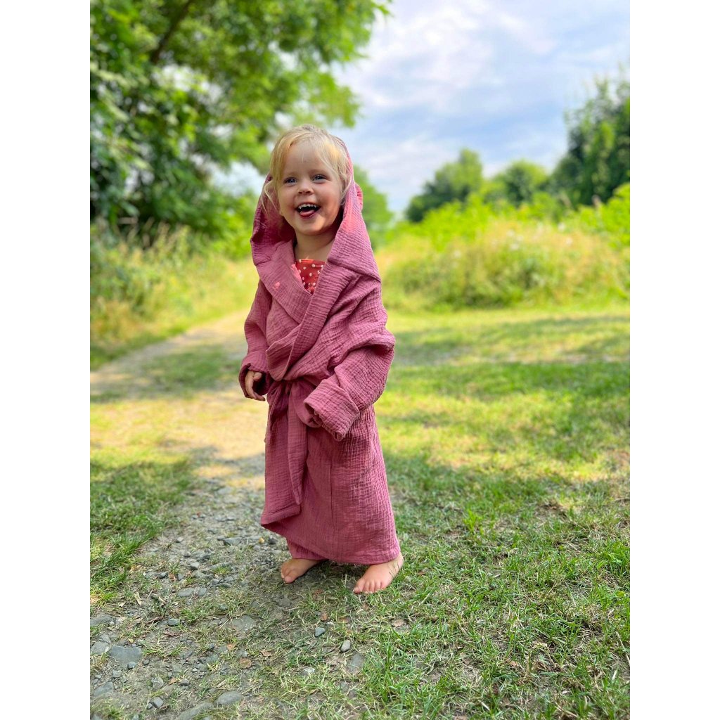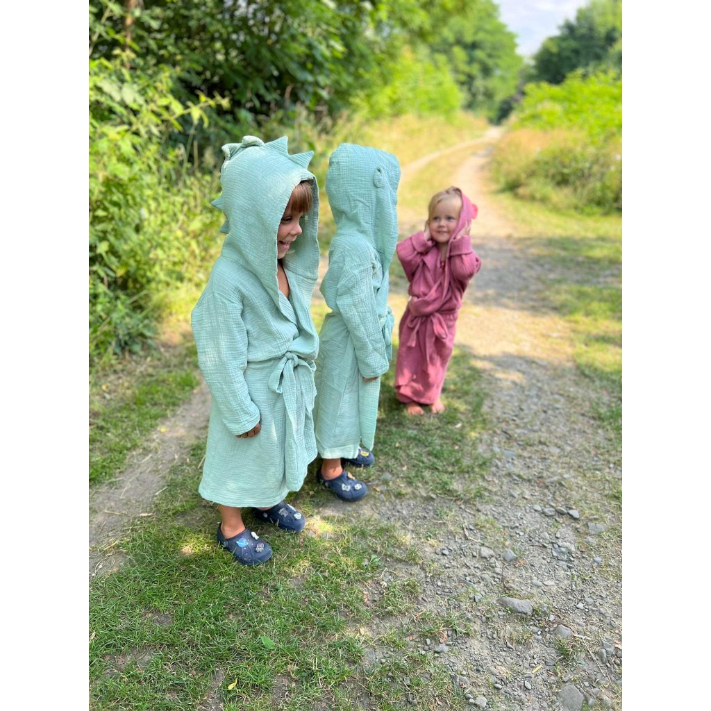 Tento dětský župánek s kapucí je vyrobený z velmi příjemného bavlněného mušelínu. Vaše děti budou mít pocit sucha a tepla i po osušení po koupání. Bude skvělým doplňkem pro každodenní rituály po koupání a pro relaxaci doma. Vaše děti se budou cítit pohodlně a stylově s roztomilými doplňky na kapuci.