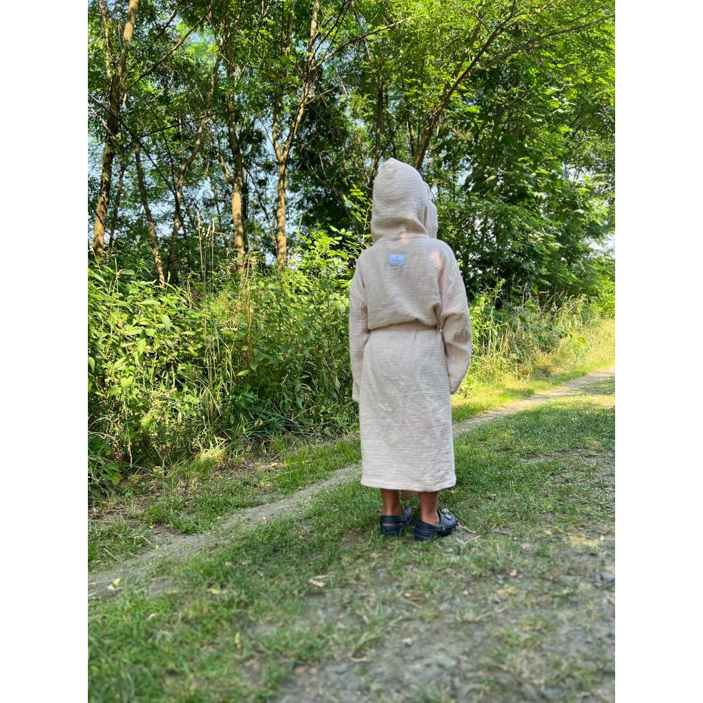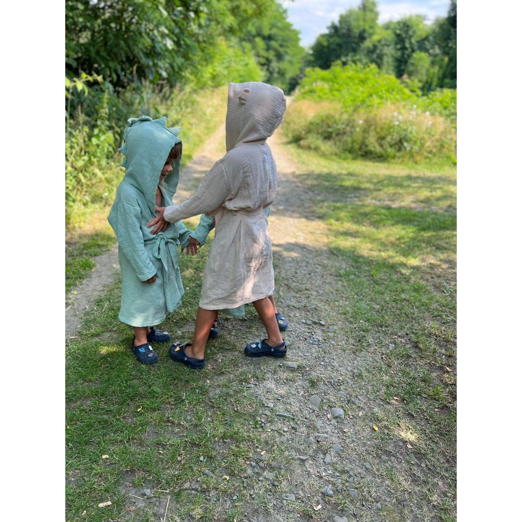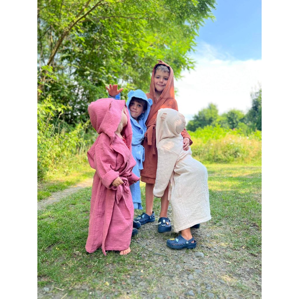 Tento dětský župánek s kapucí je vyrobený z velmi příjemného bavlněného mušelínu. Vaše děti budou mít pocit sucha a tepla i po osušení po koupání. Bude skvělým doplňkem pro každodenní rituály po koupání a pro relaxaci doma. Vaše děti se budou cítit pohodlně a stylově s roztomilými doplňky na kapuci.