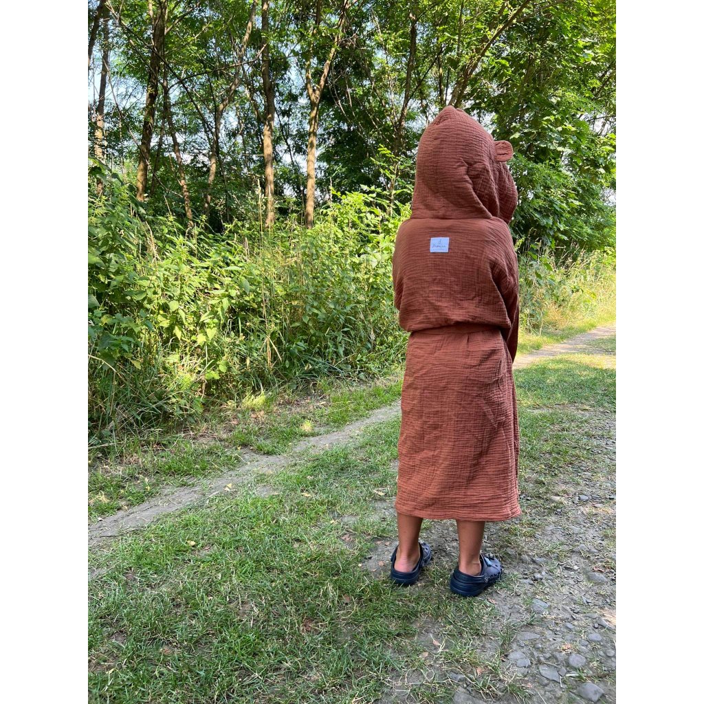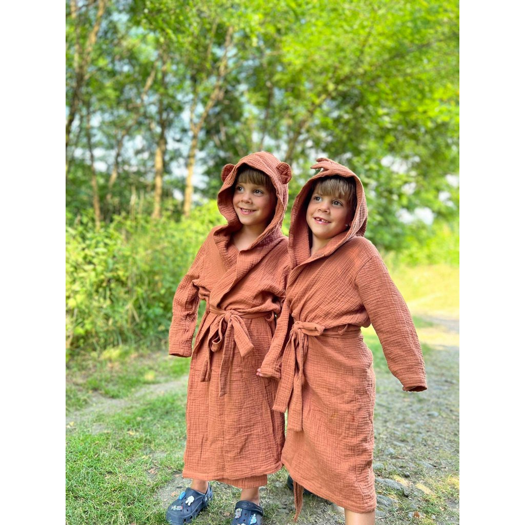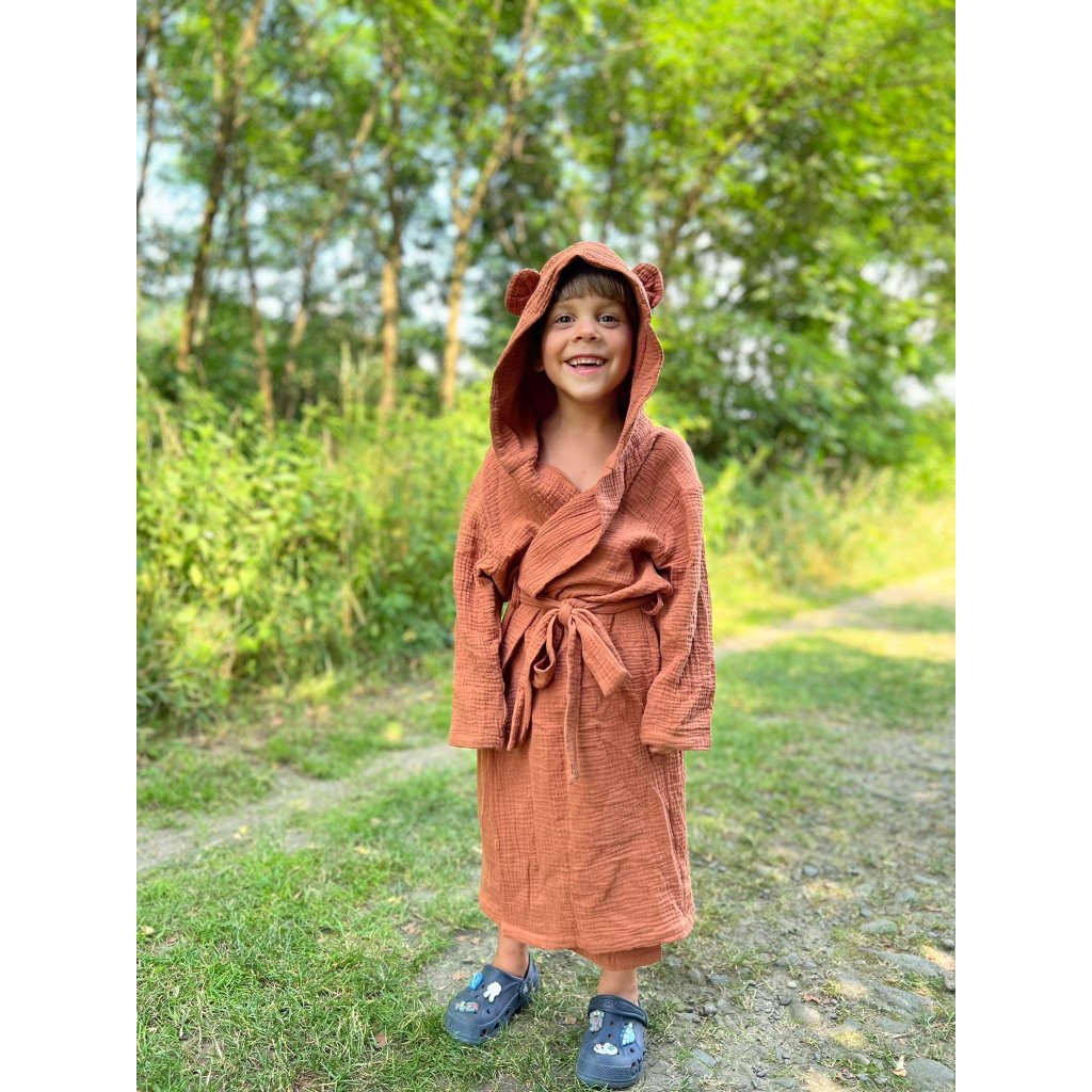 Tento dětský župánek s kapucí je vyrobený z velmi příjemného bavlněného mušelínu. Vaše děti budou mít pocit sucha a tepla i po osušení po koupání. Bude skvělým doplňkem pro každodenní rituály po koupání a pro relaxaci doma. Vaše děti se budou cítit pohodlně a stylově s roztomilými doplňky na kapuci.