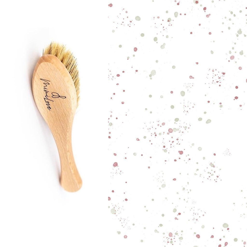 Kartáč na vlásky pro novorozence vyroben z bukového dřeva a kozích vlasů, doplněn o praktickou plenku.
