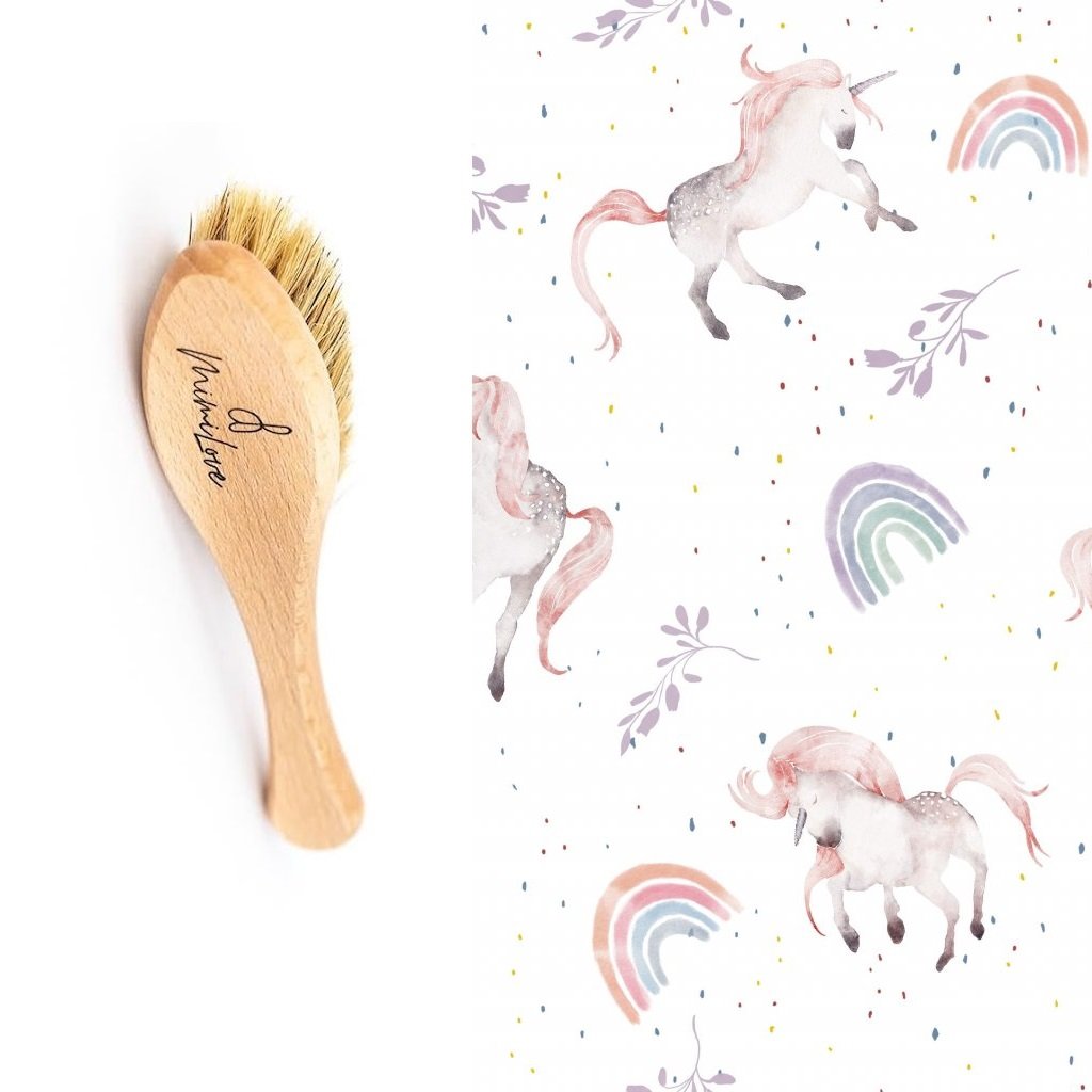 Kartáč na vlásky s praktickou plenkou Jednorožci White - střední tvrdost