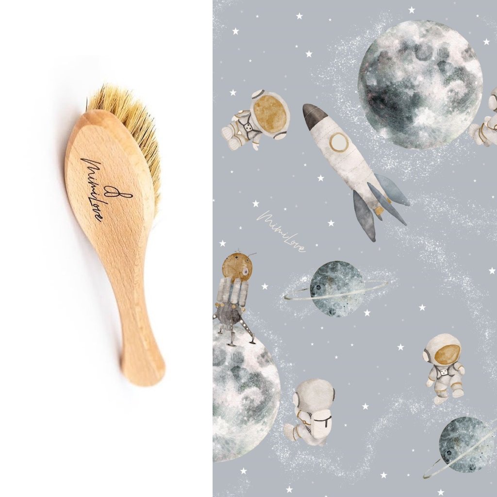 Kartáč na vlásky pro novorozence vyroben z bukového dřeva a kozích vlasů, doplněn o praktickou plenku.