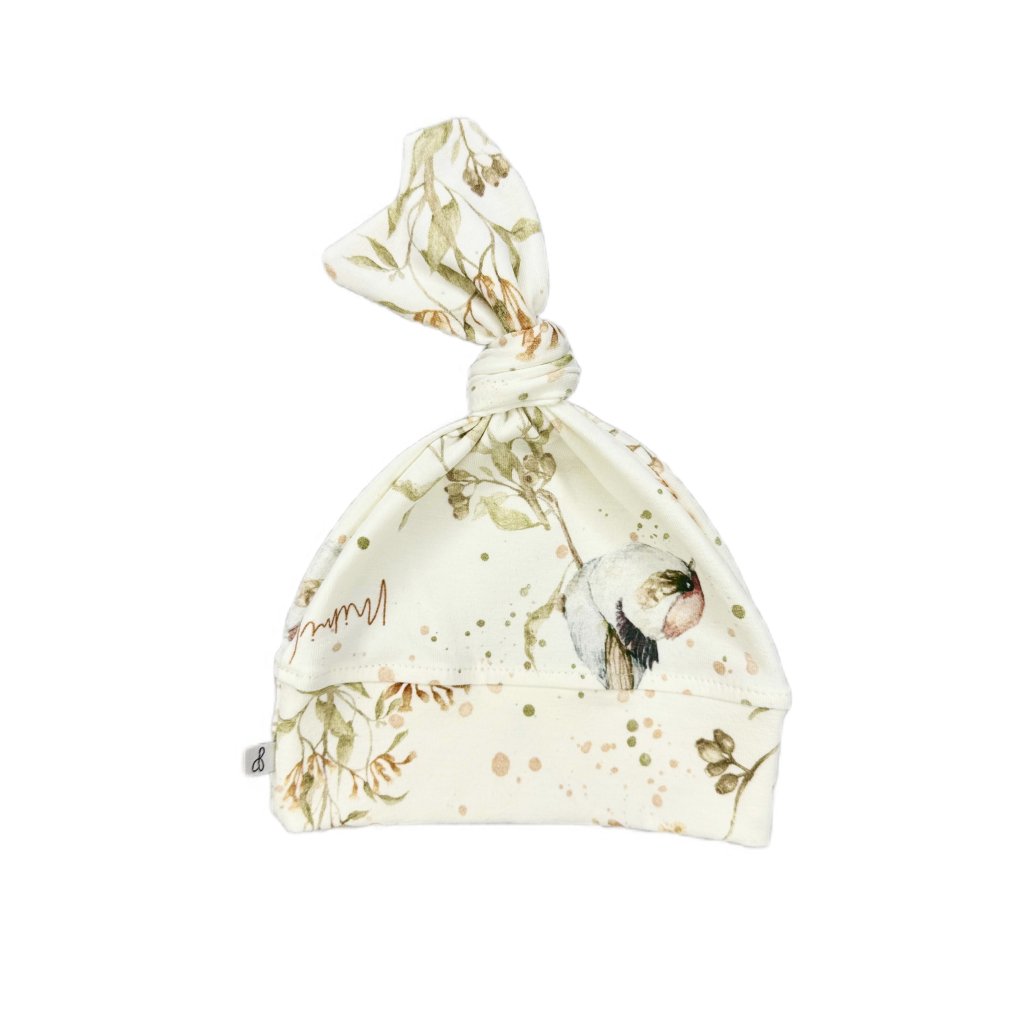 Čepičku lze regulovat díky uzlíku zakončeném střihu srdíčka, takže je rostoucí. Krásně lze přizpůsobit hlavičce dítěte.