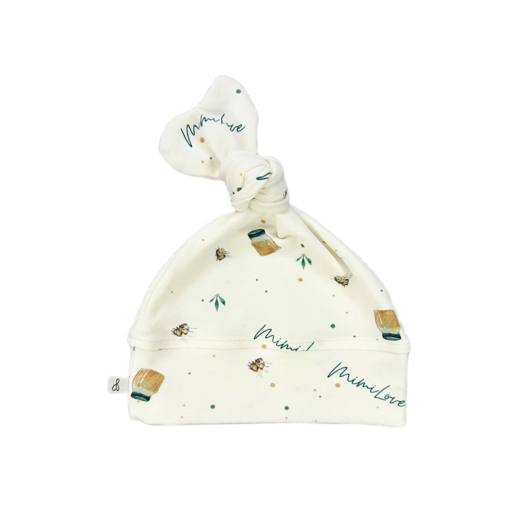 Čepičku lze regulovat díky uzlíku zakončeném střihu srdíčka, takže je rostoucí. Krásně lze přizpůsobit hlavičce dítěte.