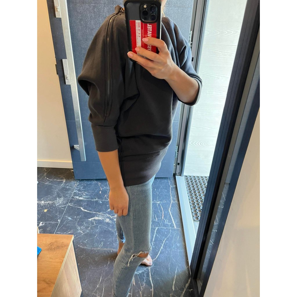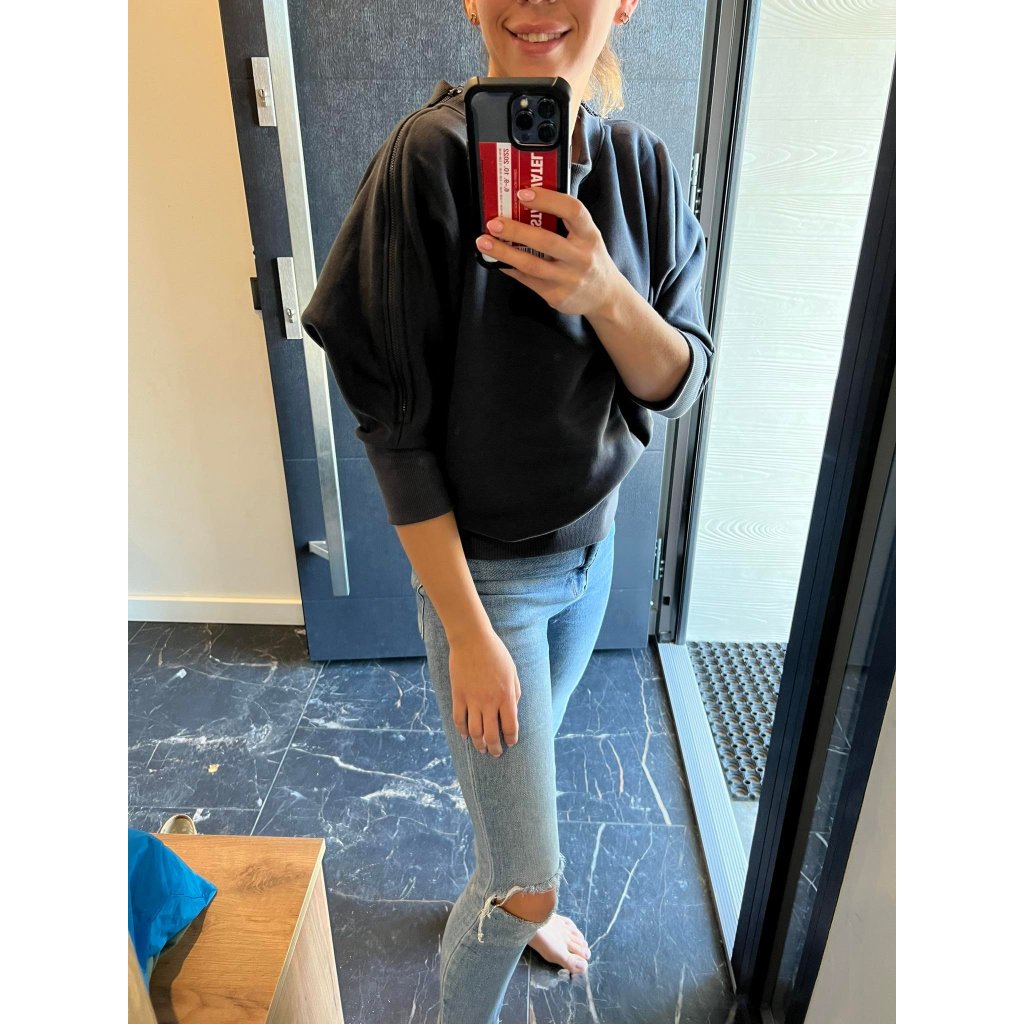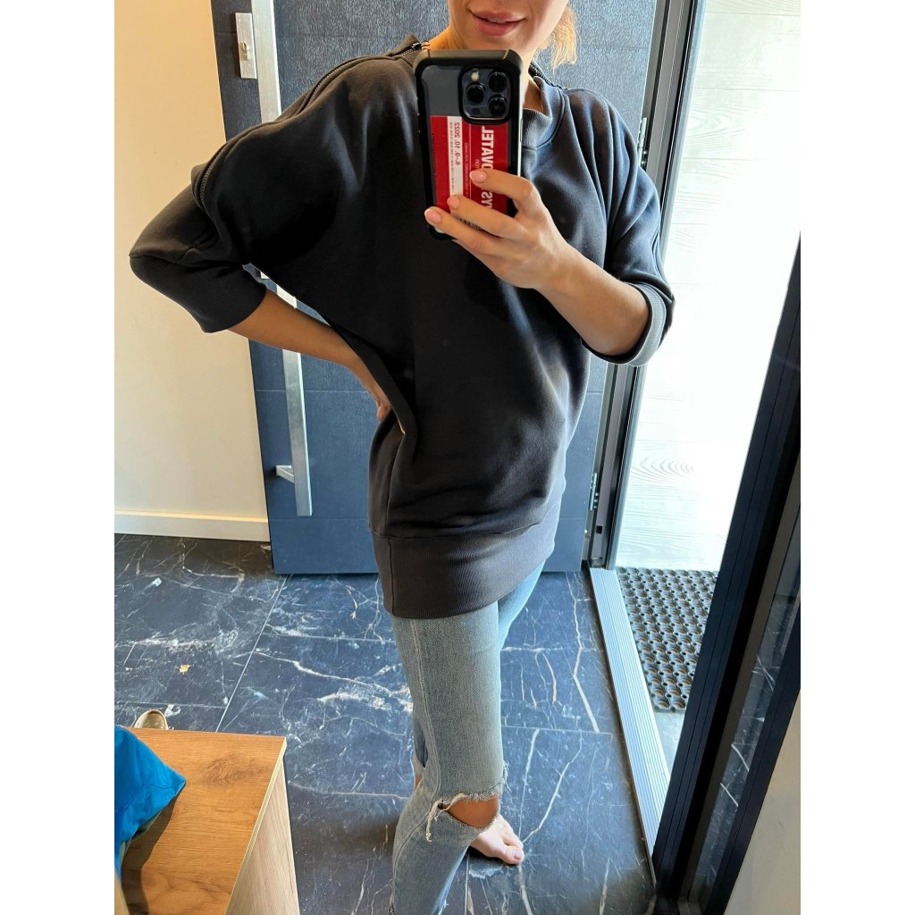 Mikina má mírné netopýří 3/4 rukávy, zakončené delší manžetou. Spodní lem je široký a pružný, proto mikinu lze nosit jako k džínám, tak jako dlouhou k legínám.