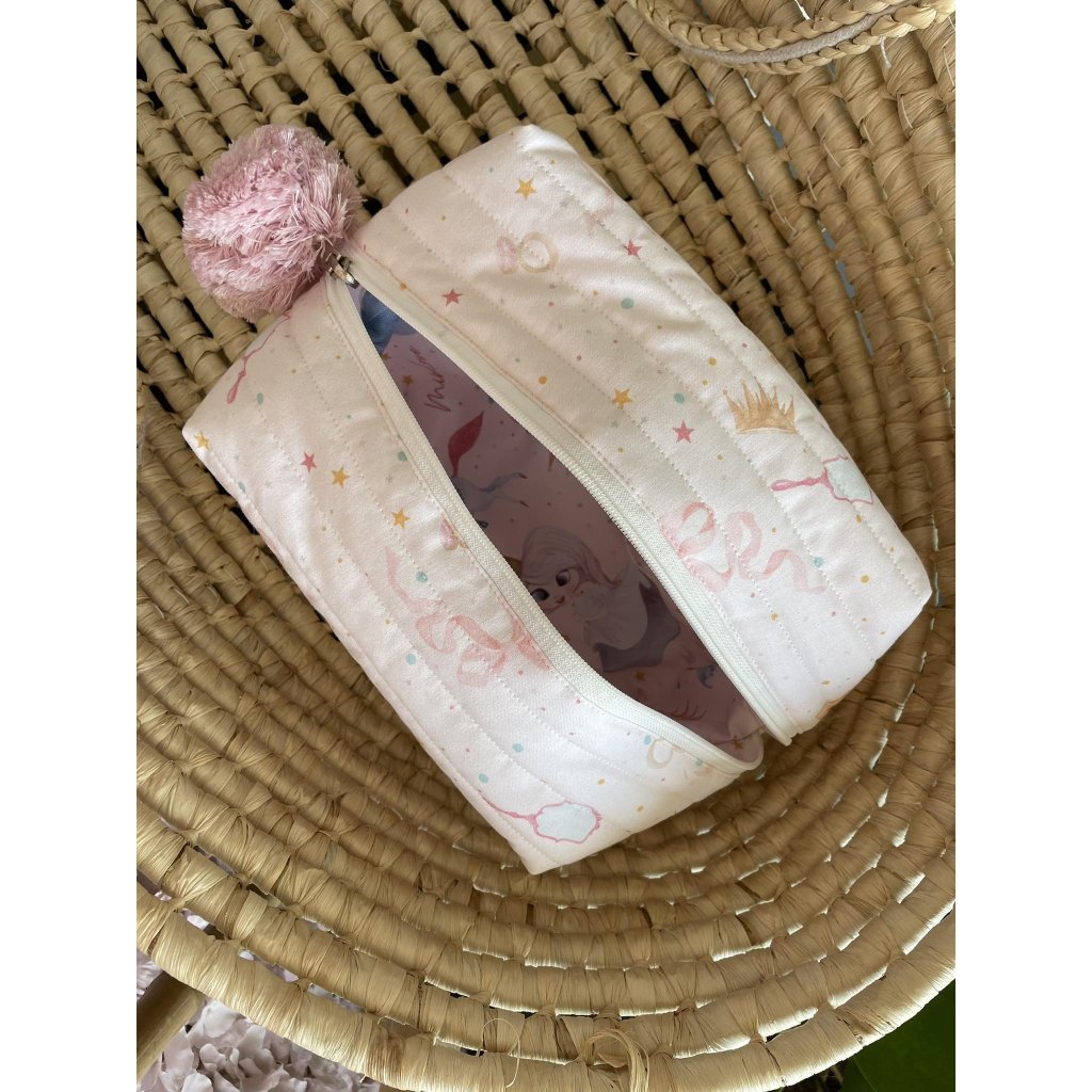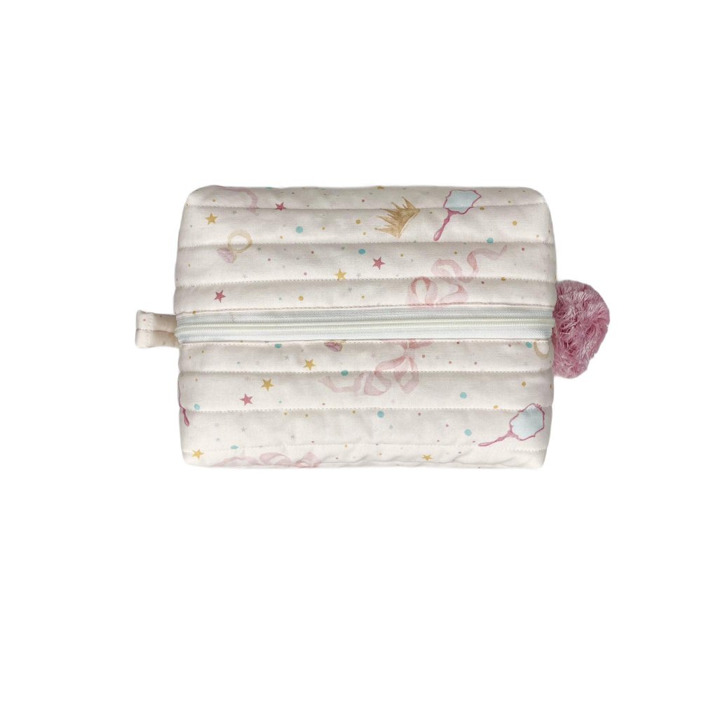 Taška je řešena zapínáním na zip, ukončený roztomilou bambulkou. Z druhé strany praktické poutko k uchycení.