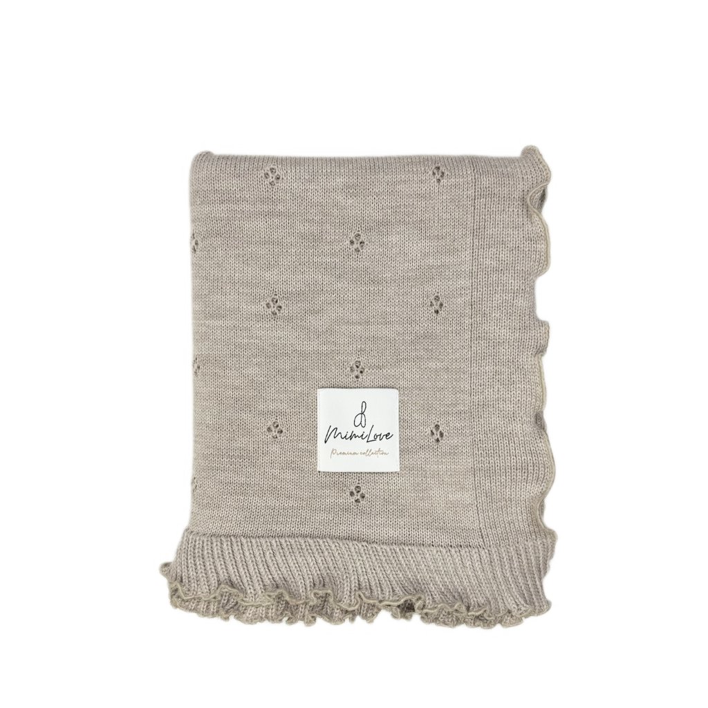 Lehká dečka z Merino vlny v krásném úpletu, zdobená volánkem, kolem celého úplet dečky, je pružná, lehoučká a zároveň je obdarována skvělými vlastnostmi. Dítě se pod dečkou nepotí, krásně odvádí vlhkost a zároveň hřeje.