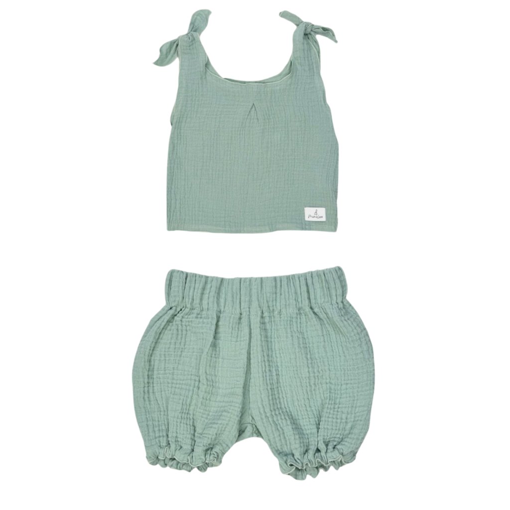 Letní mušelínová kraťásková souprava vel. 1-2 roky Šalvěj