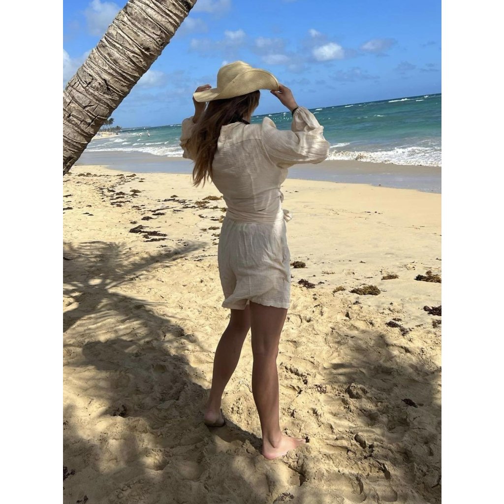 Letní souprava s kraťasy z bavlněného mušelínu vel. UNI Béžový