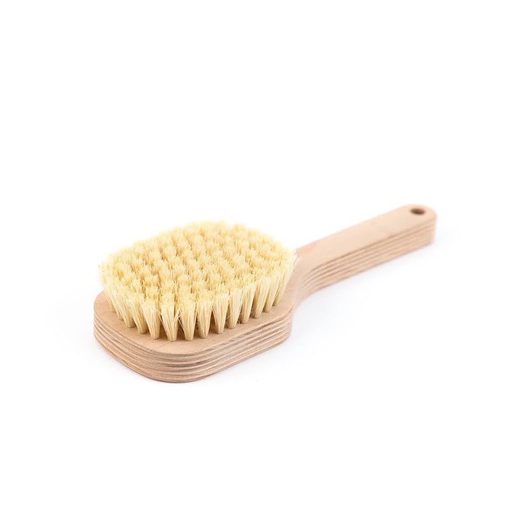 navíc díky speciální bukové vazbě a ošetření rukojeti můžete kartáčovat i pod tekoucí vodou, nebo ve vaně. Kartáč má tvrdší štětiny, doporučujeme těm, kteří mají odolnou pokožku, nebo pokročilým, kterým už kartáčování kartáčem střední tvrdosti nestačí. Pokud máte jemnou a citlivou pokožku těla, můžeme doporučit verzi kartáče se štětinami střední tvrdosti.