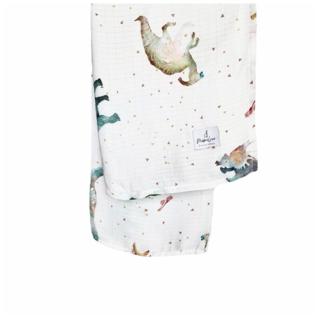 Praktická velká zavinovací přikrývka z velmi příjemného mušelínu v praktickém vzoru dino ve velikosti