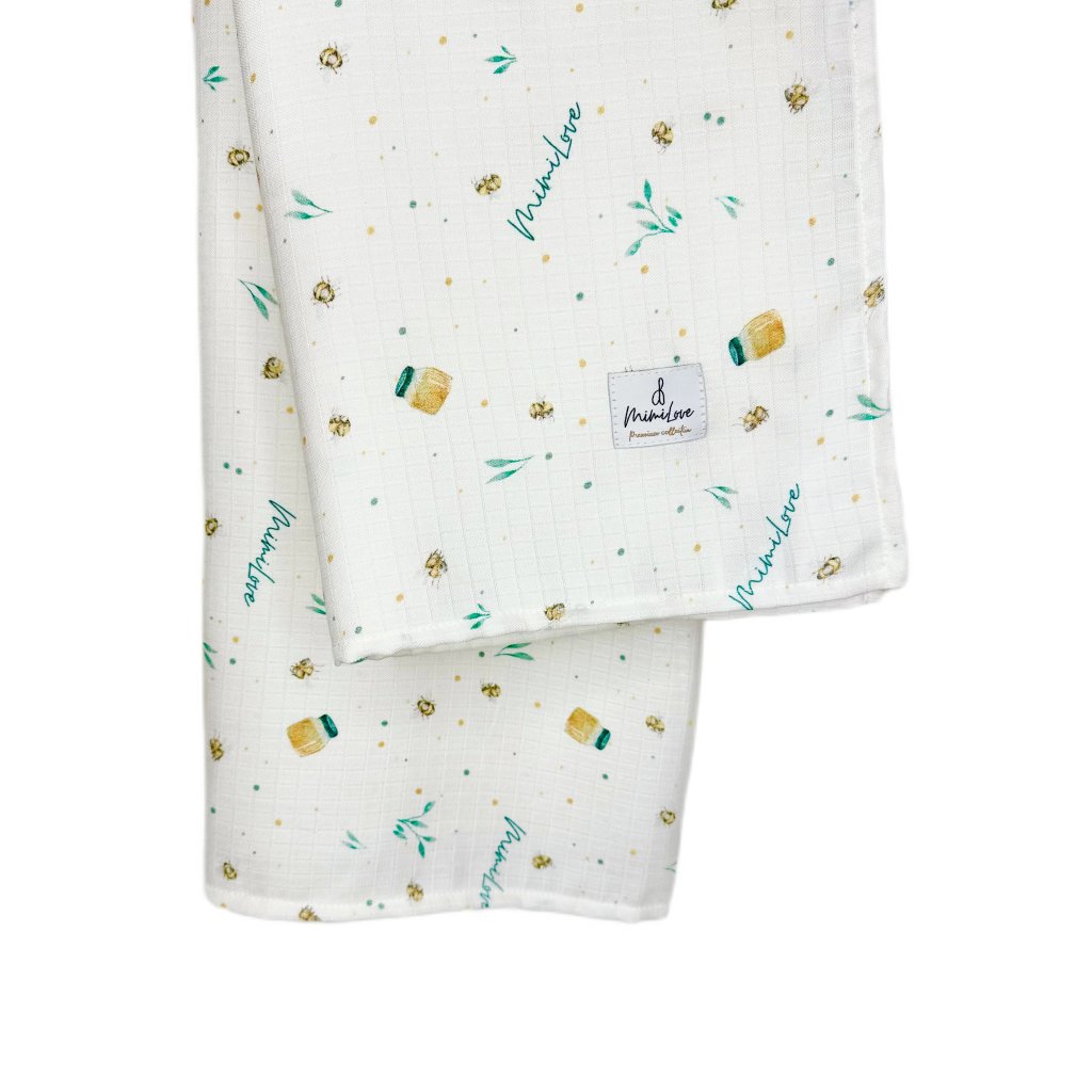 Praktická velká zavinovací přikrývka z velmi příjemného mušelínu v praktickém vzoru Med ve velikosti