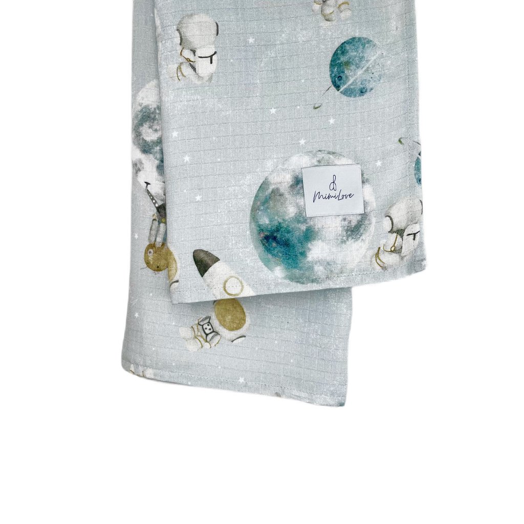 Praktická velká zavinovací přikrývka z velmi příjemného mušelínu v praktickém vzoru Vesmír ve velikosti