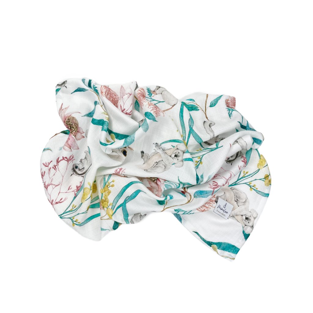 Praktická zavinovací přikrývka z velmi příjemného mušelínu v nádherném ručně malovaném vzoru ve velikosti 75 x 75 cm, vyrobena z 60% bambusové viskózy a 40% bavlny, Materiál je ideální pro novorozené děti a děti s citlivou pokožkou.