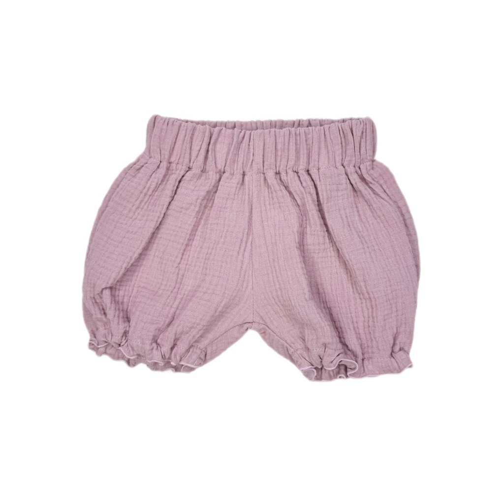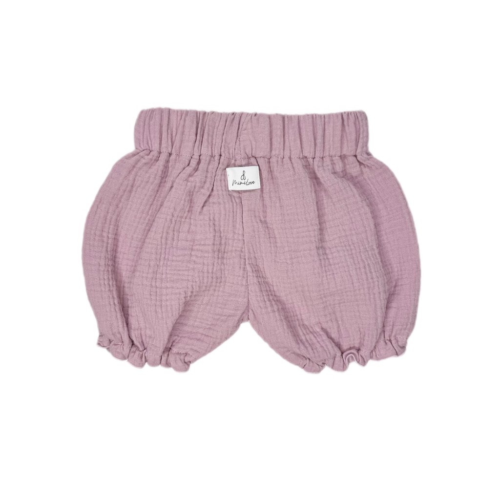 Kraťásky, neboli pumpky jsou vyrobeny z bavlněného mušelínu, materiál je velmi lehký, vzdušný a příjemný na dotek. Je to také velmi odolný materiál, který vydrží mnoho letních sezón. Pumpky jsou velice pohodlné, zakončené na jemnou gumičku, která netlačí, díky tomuto střihu jsou velmi pohodlné a zároveň vzdušné.