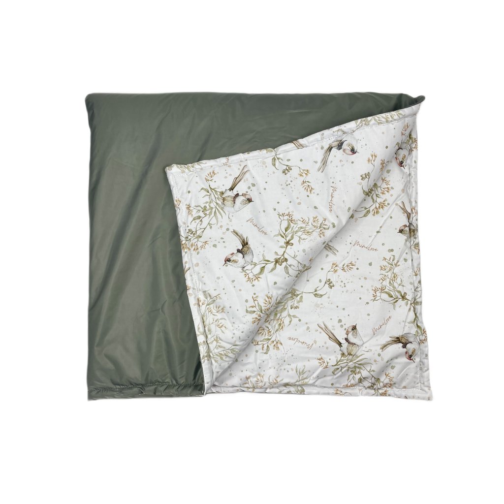 Z jedné strany je deka vyrobena z 100% bavlny, což jí dodává příjemnou a měkkou texturu pro pohodlné sezení nebo ležení. Z druhé strany je deka vyrobena z 100% nepromokavého polyesteru, který chrání Vaše oblečení a piknikové potřeby před vlhkostí z mokré trávy nebo písku.