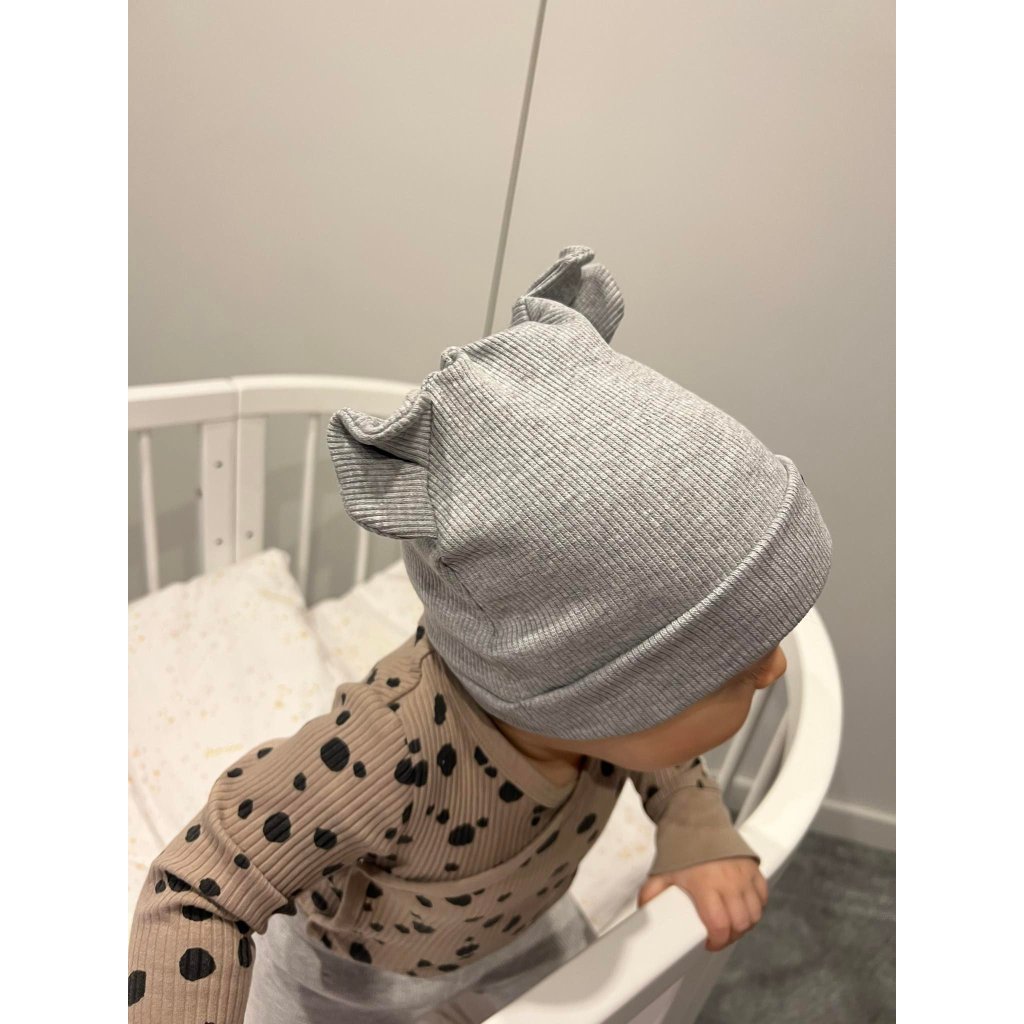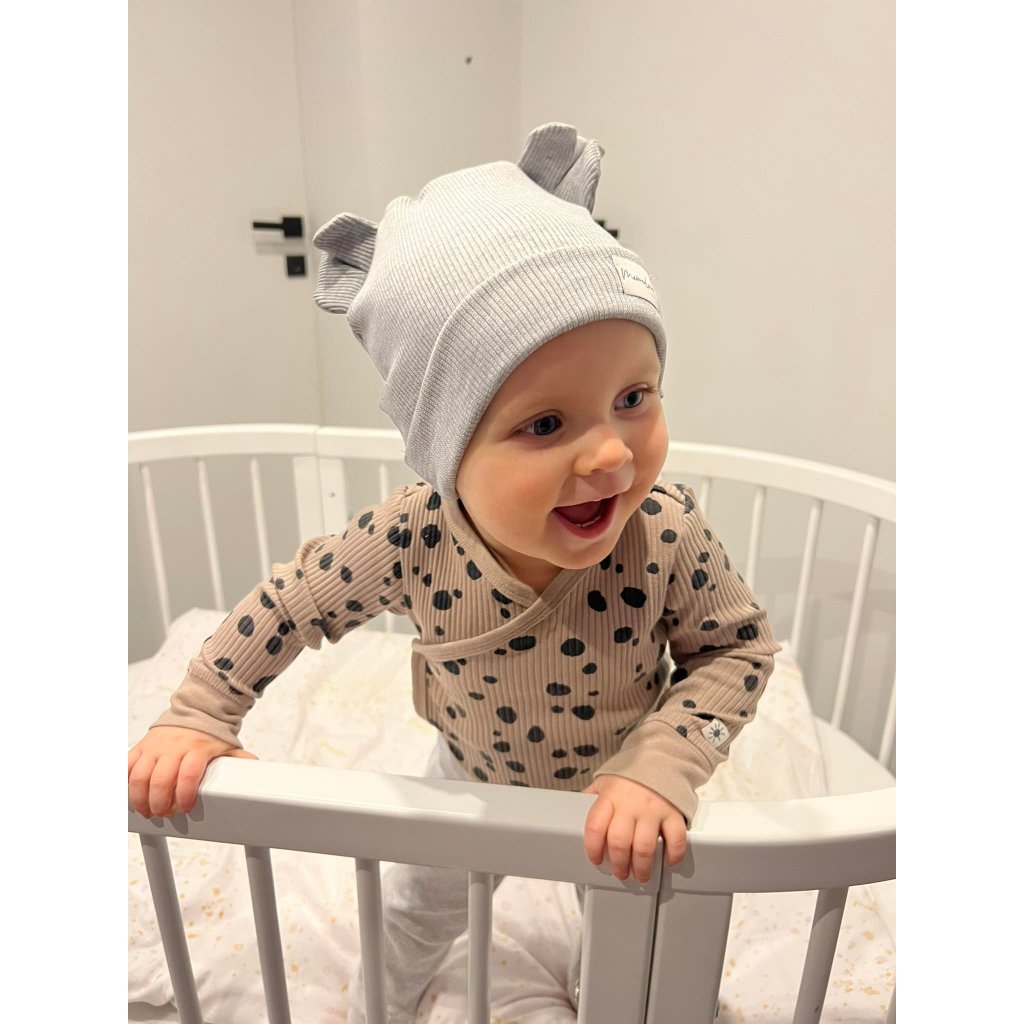 Přechodová čepice MEDVÍDEK 0-6m. Tmavě šedý melír
