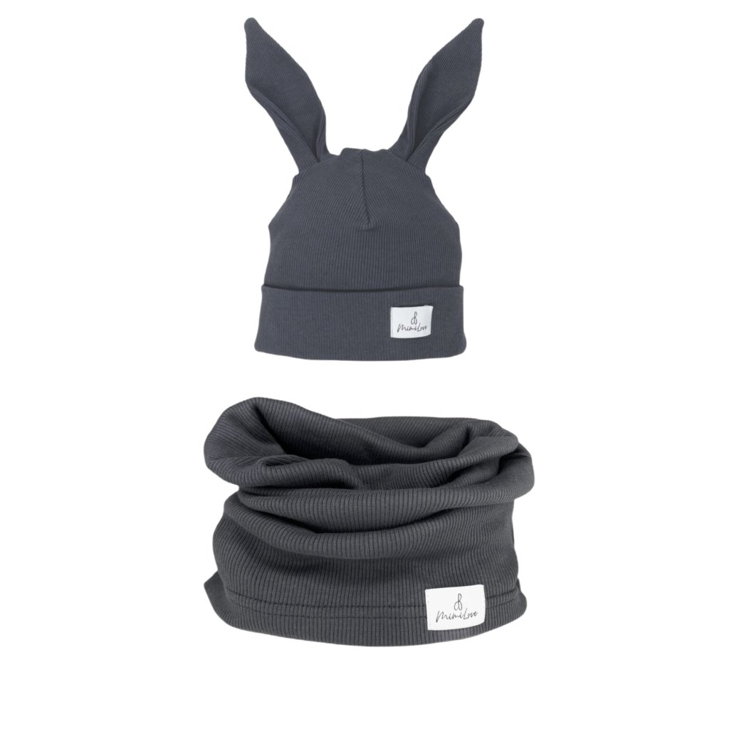 Sada čepičky KRÁLÍČEK s nákrčníkem Grafit 2-4 let