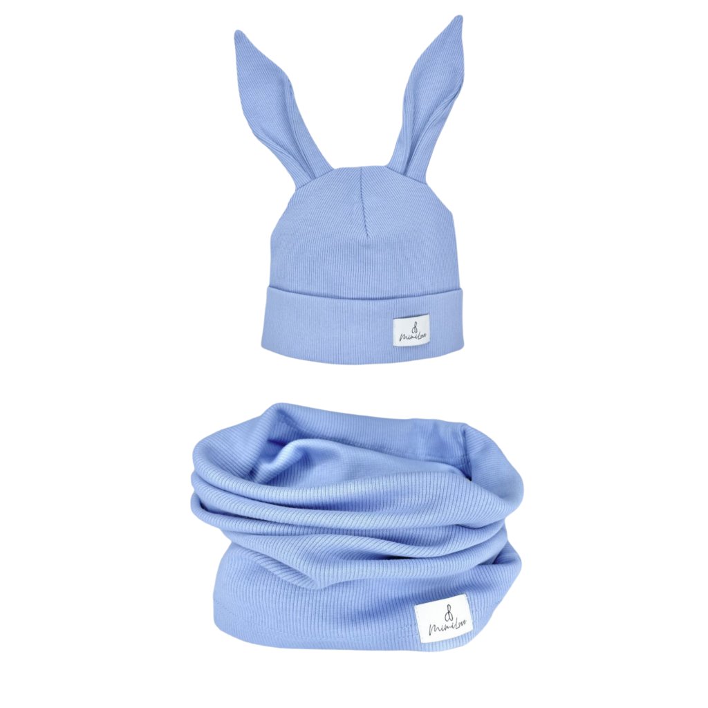 Sada čepičky KRÁLÍČEK s nákrčníkem Světle modrá 2-4 let