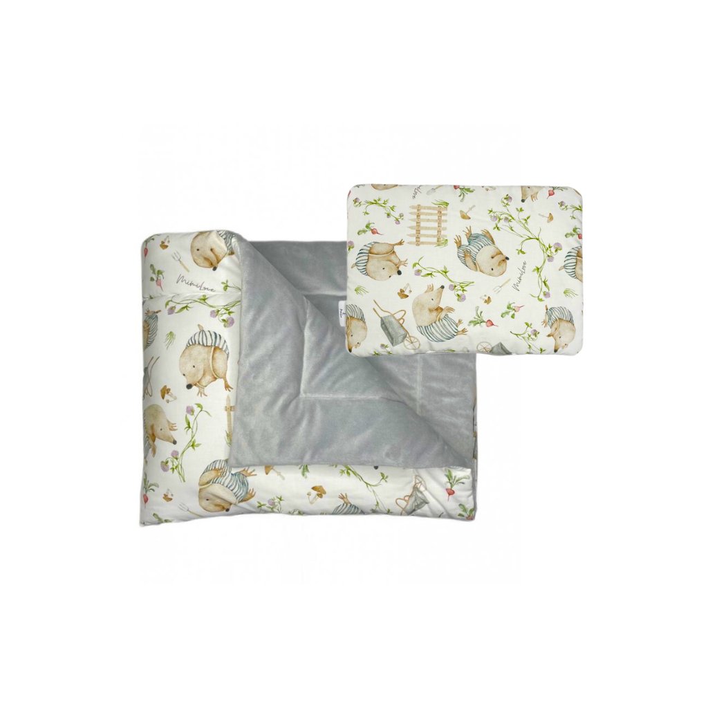 Celoroční přikrývka s polštářkem nejen pro miminka vyrobená z jemného sametového velvetu, který je tak jemný a velice příjemný na dotek a z druhé strany je bavlněná látka v našich oblíbených vzorech.