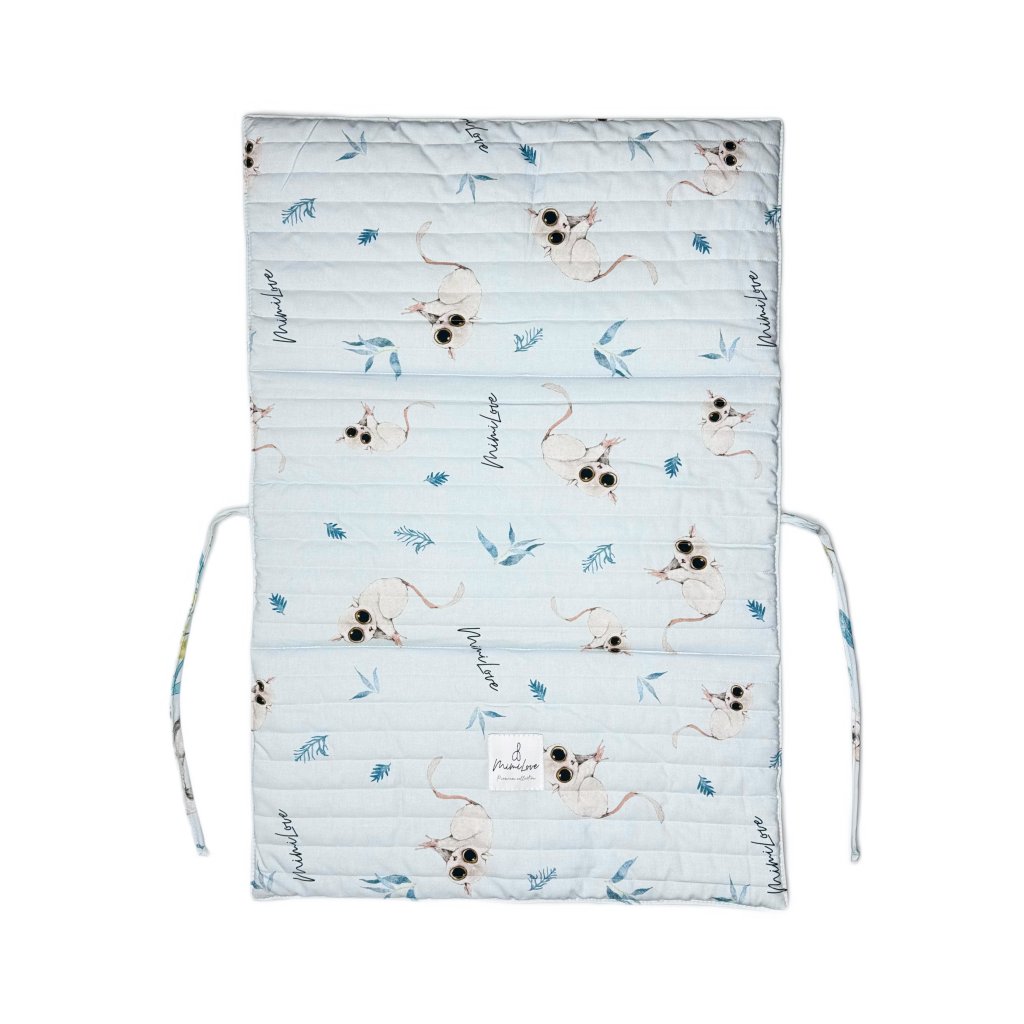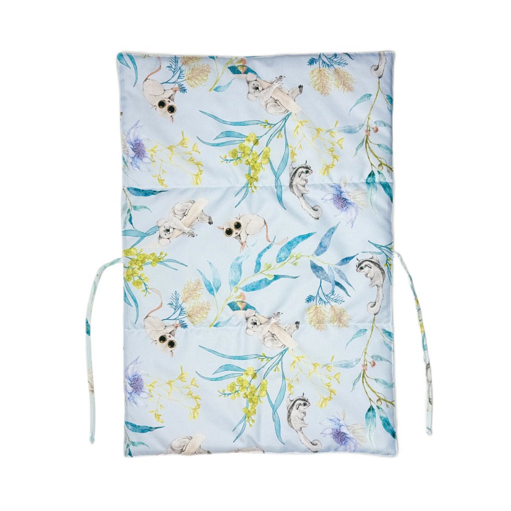 Skládací přebalovací podložka, kterou jde jednoduše složit a uvázat šňůrkou. Podložka je z jedné strany nepromokavá a z druhé strany 100% bavlněná látka ve stejném vzoru. Uvnitř je jemná antialergická výplň.