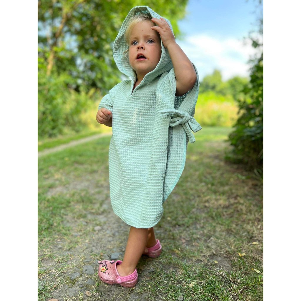 Vaflové dětské pončo s kapucí vel. 1-3 let Pastel mint