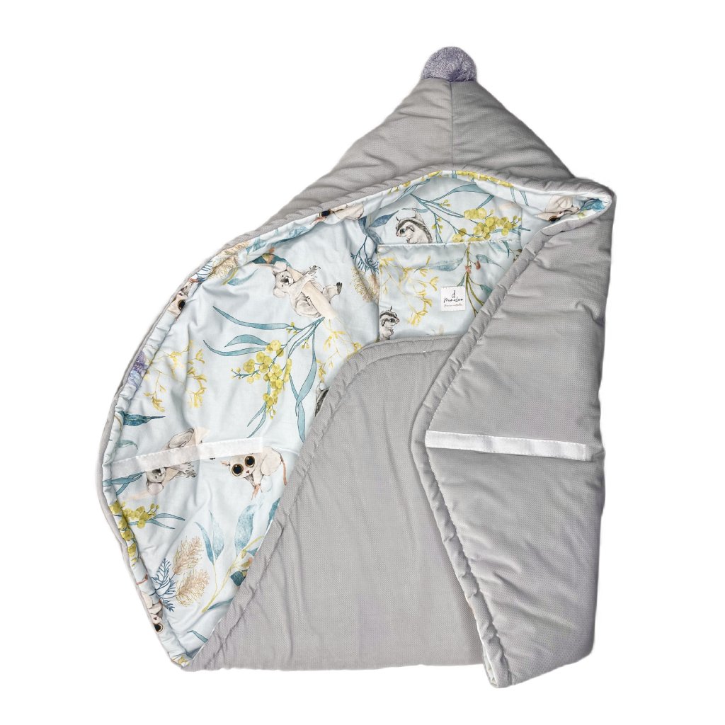 Zavinovačka / fusak do autosedačky Australian Summer Blue / světle šedý velvet