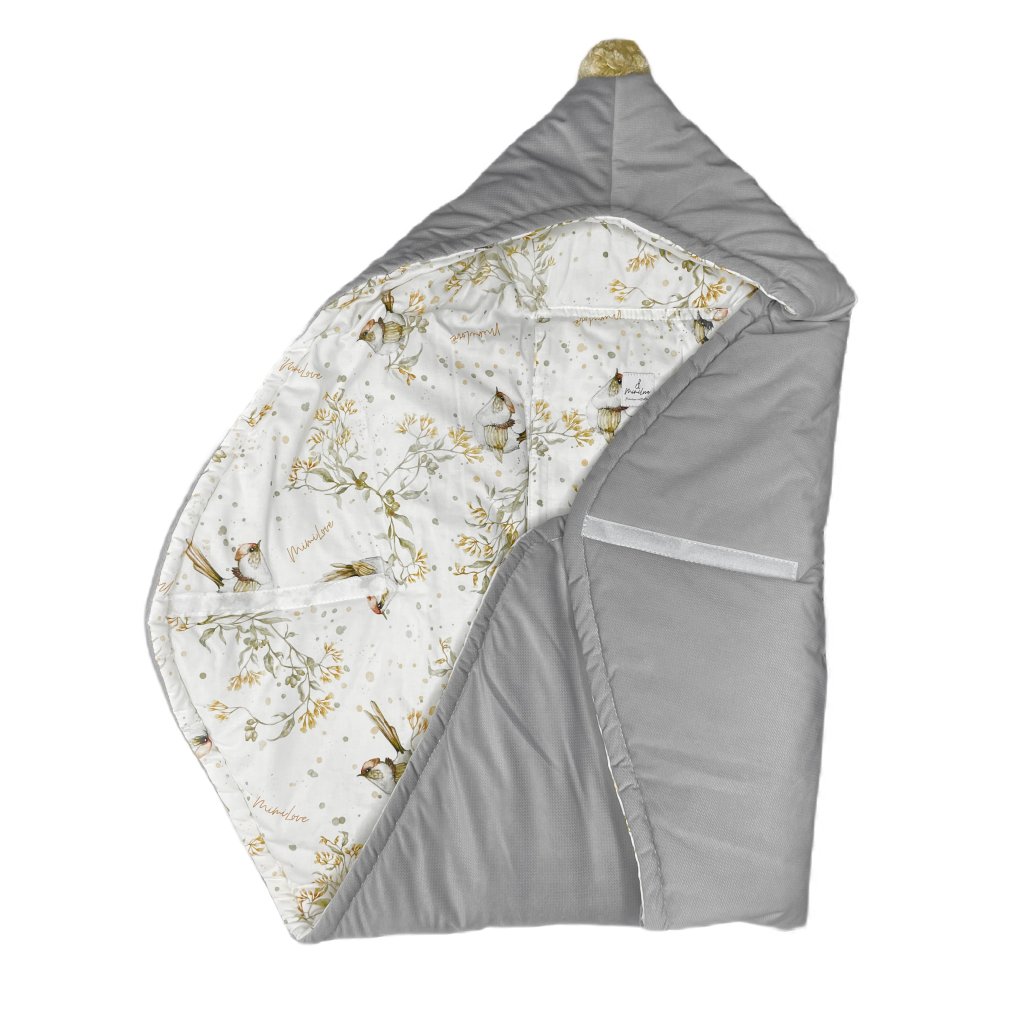 Zavinovačka / fusak do autosedačky Golden Birds / světle šedý velvet