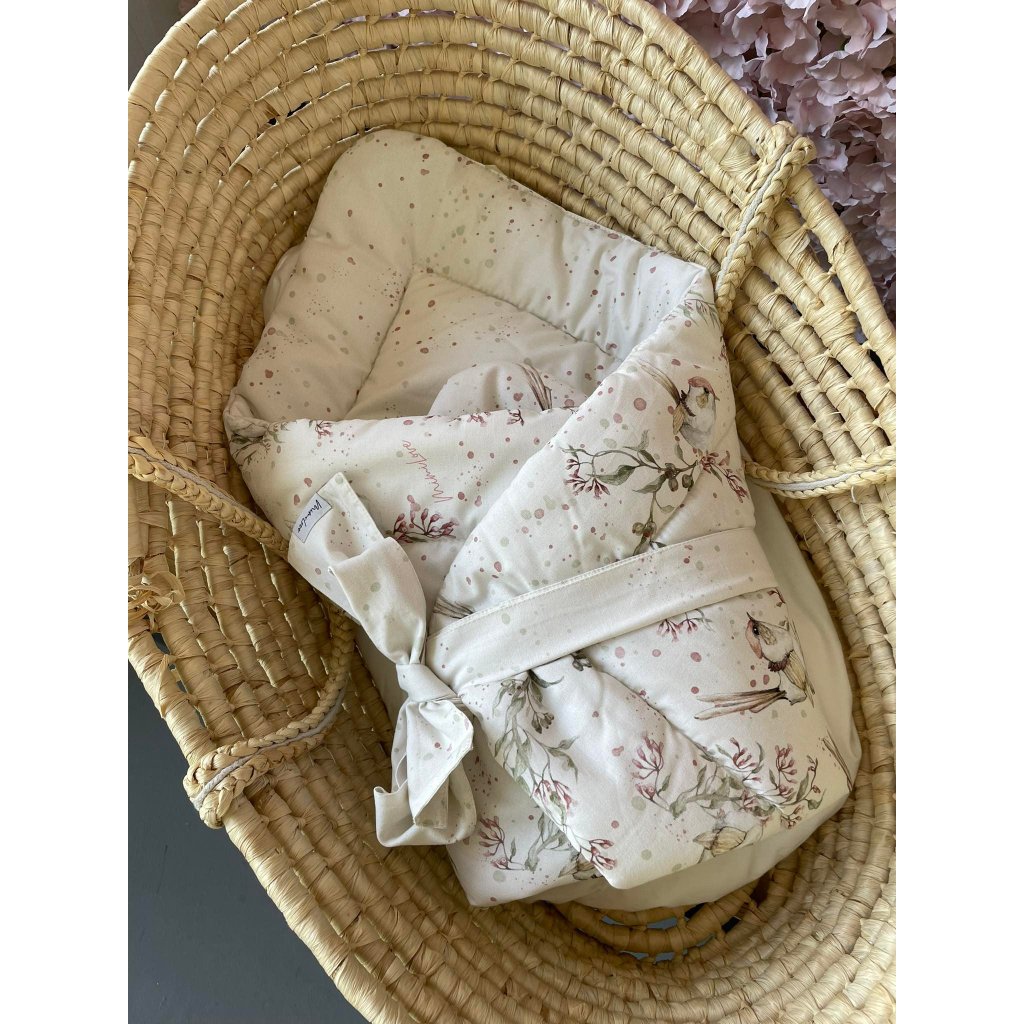 Velice praktická krásná zavinovačka 3 v 1 v nádherném vzoru ptáčků s květinkami.